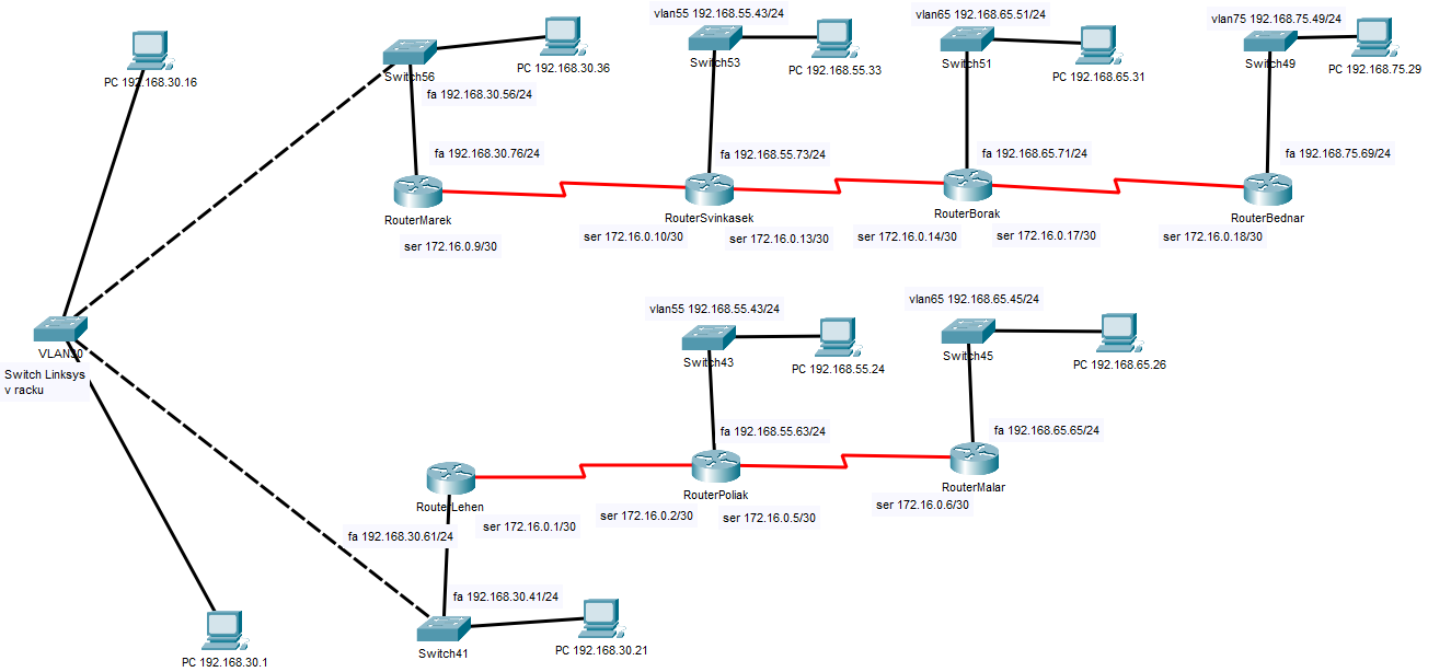 Switch s IP adresou 192.168.65.45 je modernejší model ako ostatné v učebni. Má novšie VLAN možnosti a